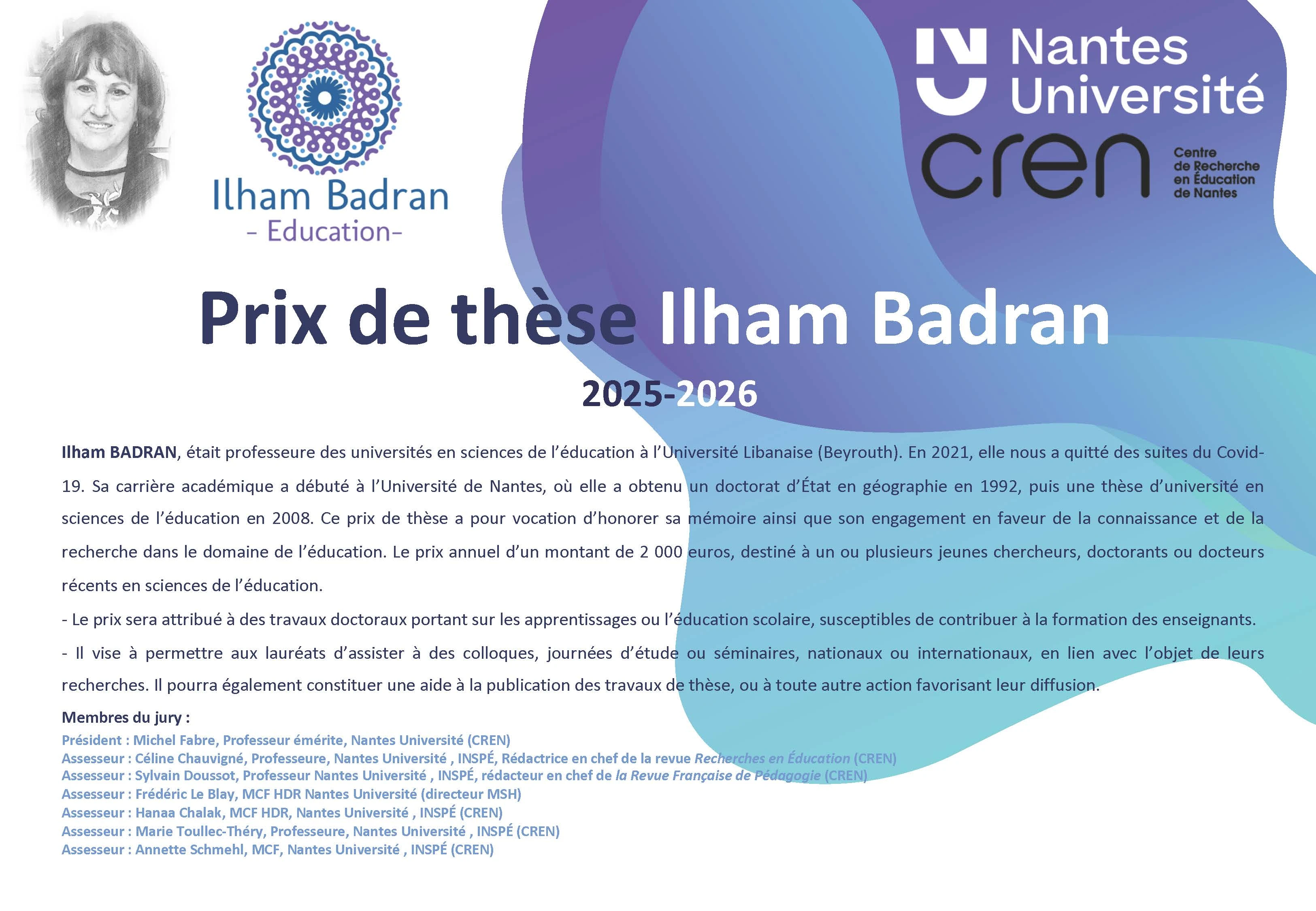 Prix de thèse en Sciences de l'Education "Ilham Badran" 2025-2026