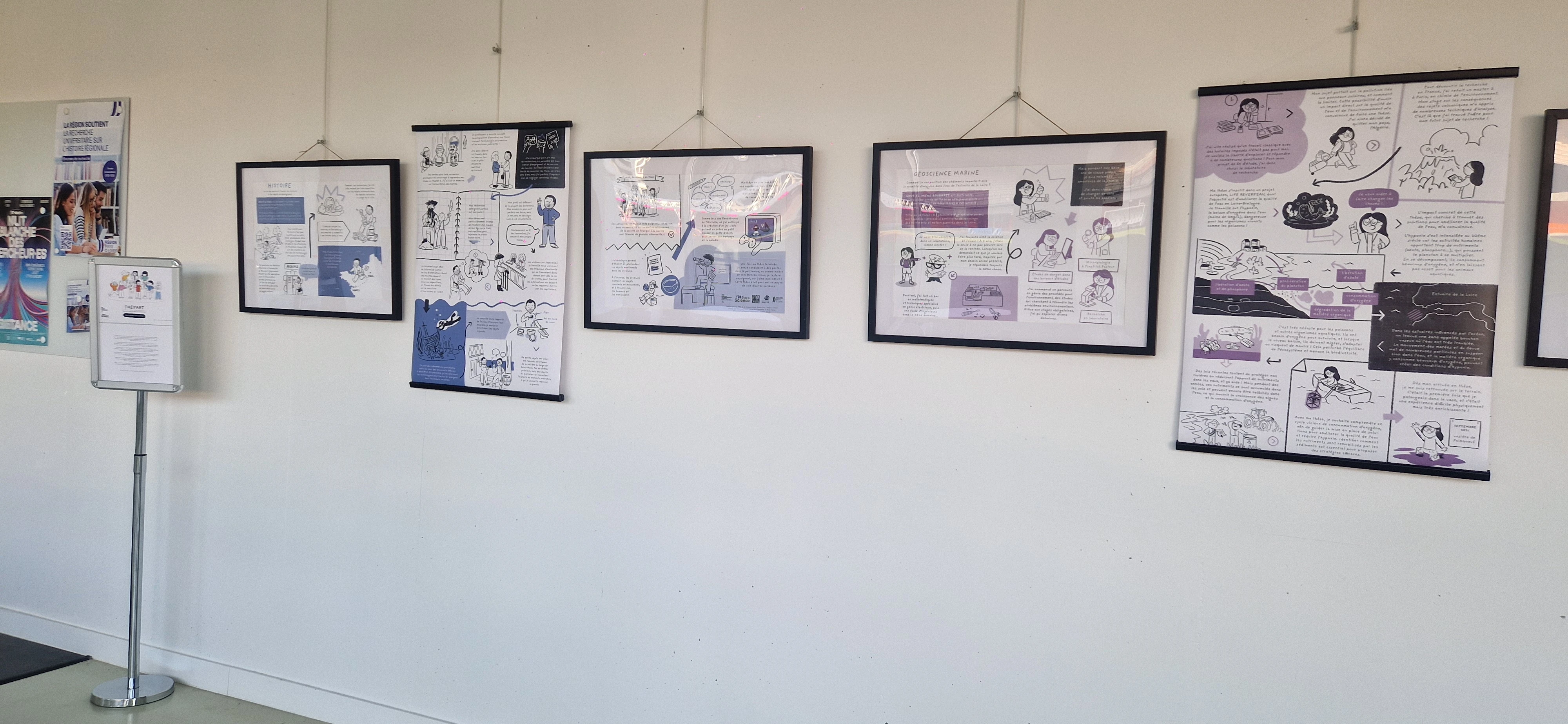 Cette exposition, qui allie sujet de thèse et art de la bande dessinée, présente les profils pluridisciplinaires de neufs doctorant.e.s de la région Pays de la Loire. Partez à la rencontre des foraminifères et leur bactérie acide, devenez expert de la sexualité des algues, initiez-vous à la vie des anciens marins, interrogez-vous sur la navigation des bateaux en 2050…