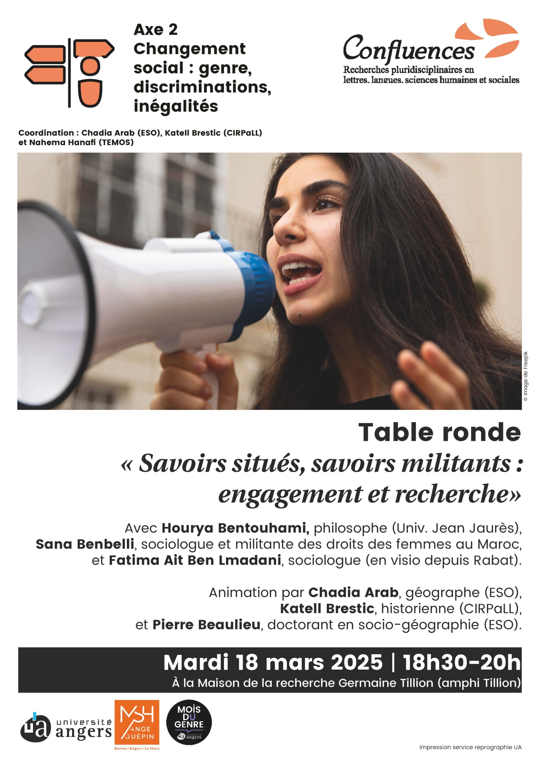 l’axe 2 – Changement social : genre, discriminations et inégalités, de la Structure Fédérative de Recherche (SFR) Confluences (Université d'Angers)