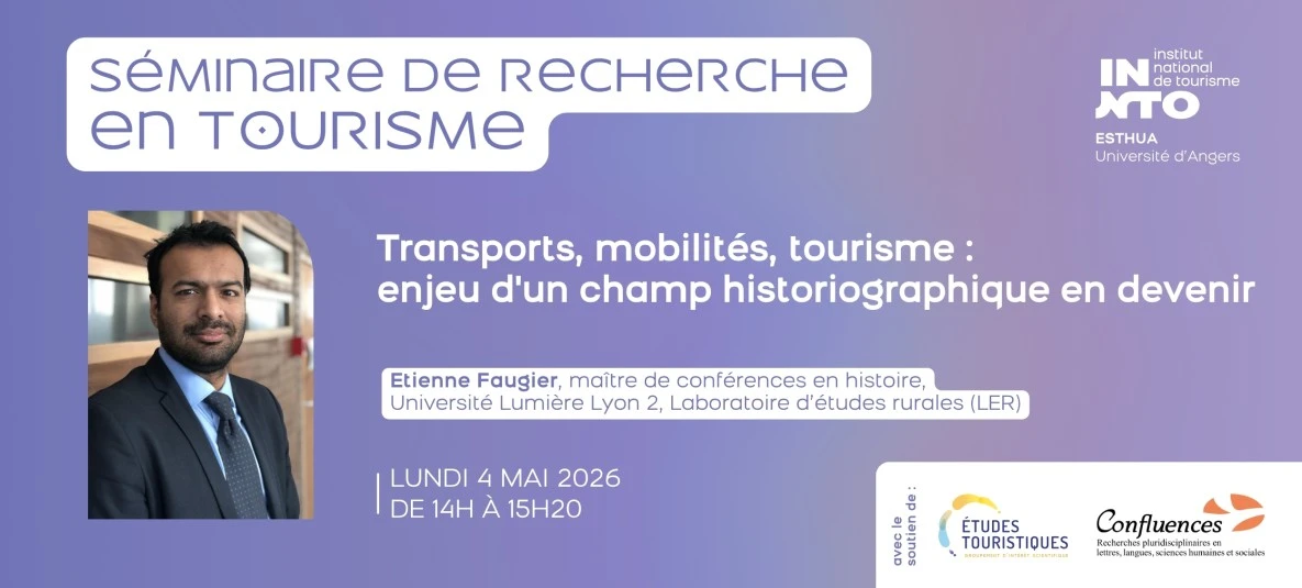 Cycle de séminaires de recherche en tourisme proposé par l'ESTHUA, Institut national de tourisme - INNTO France, avec le soutien de l'axe 5 “Tourisme, territoire, solidarités” de la Structure Fédérative de Recherche (SFR) Confluences et du GIS Études Touristiques.